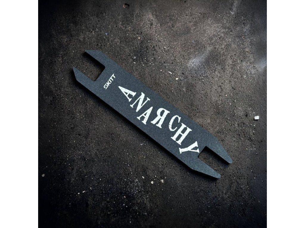 Replacement non-slip griptape custom-cut for the Skitt Anarchy freestyle scooter. It offers a safe and non-slip surface. Thanks to its durable grit, it provides reliable traction for smooth control during stunt tricks and everyday riding.