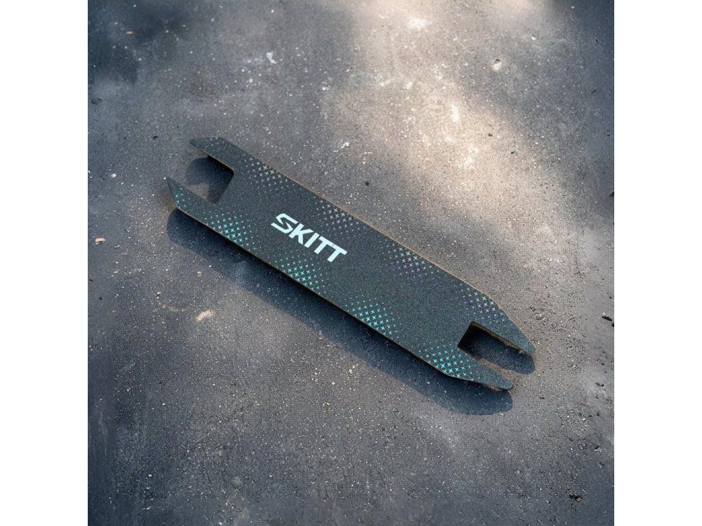 Replacement non-slip griptape custom-cut for Skitt Scout freestyle scooter. It offers a safe and non-slip surface. Thanks to its durable grit, it provides reliable traction for smooth control during stunt tricks and everyday riding.