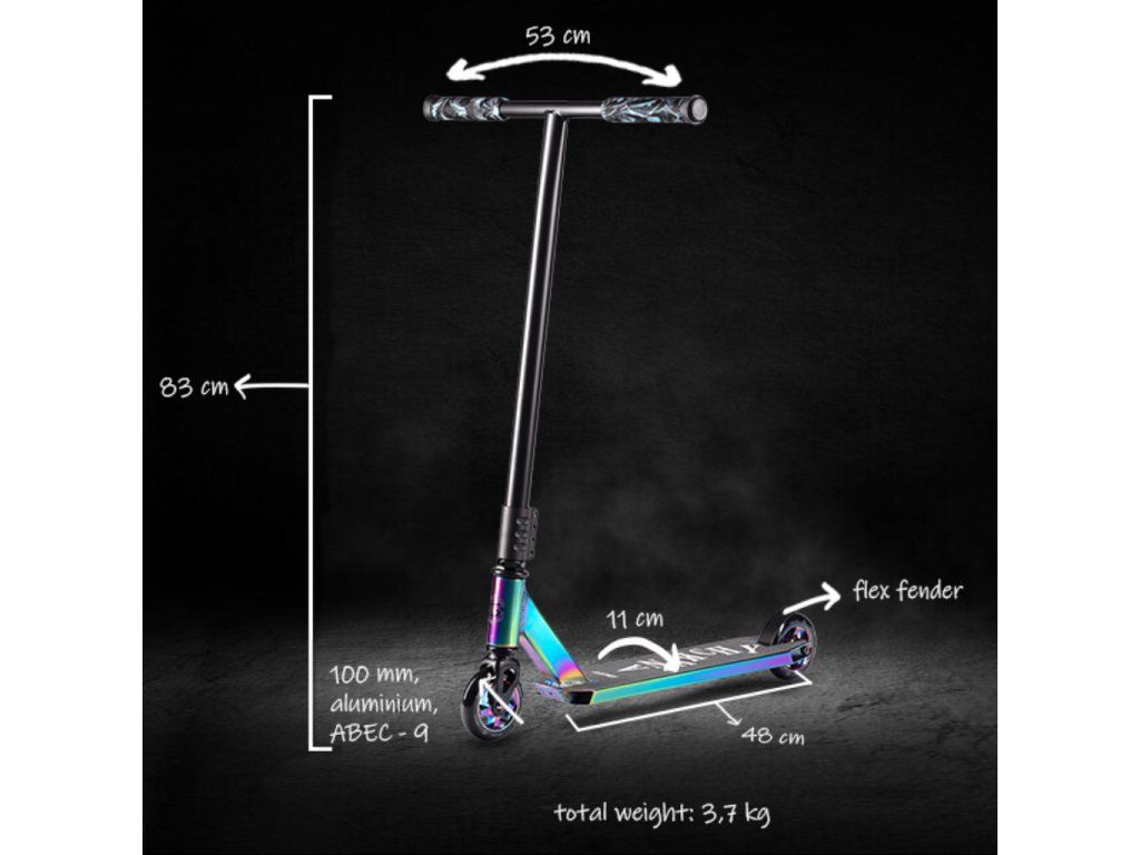 Throw away boredom and take over the skatepark. SKITT Anarchy Rainbow isn’t just another freestyle scooter – it’s your new partner for pushing limits. We designed it to survive your first jumps and advanced street tricks, all in a breathtaking Neochrome (Rainbow) design that no one will take their eyes off. It’s stable, extremely durable, and properly bold. Ready to jump on?