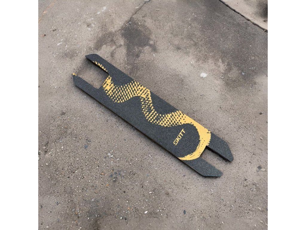 Replacement non-slip griptape custom-cut for the Skitt Venom freestyle scooter. It offers a safe and non-slip surface. Thanks to its durable grit, it provides reliable traction for smooth control during stunt tricks and everyday riding.