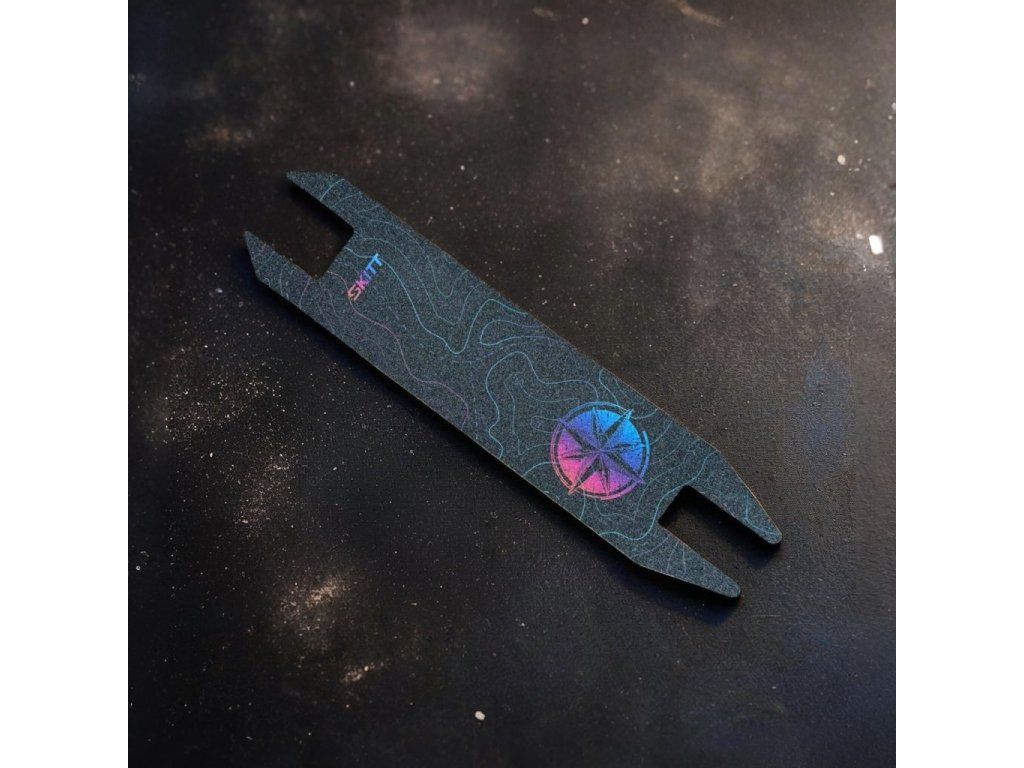 Replacement non-slip griptape custom-cut for the Skitt Scout freestyle scooter. It offers a safe and non-slip surface. Thanks to its durable grit, it provides reliable traction for smooth control during stunt tricks and everyday riding.